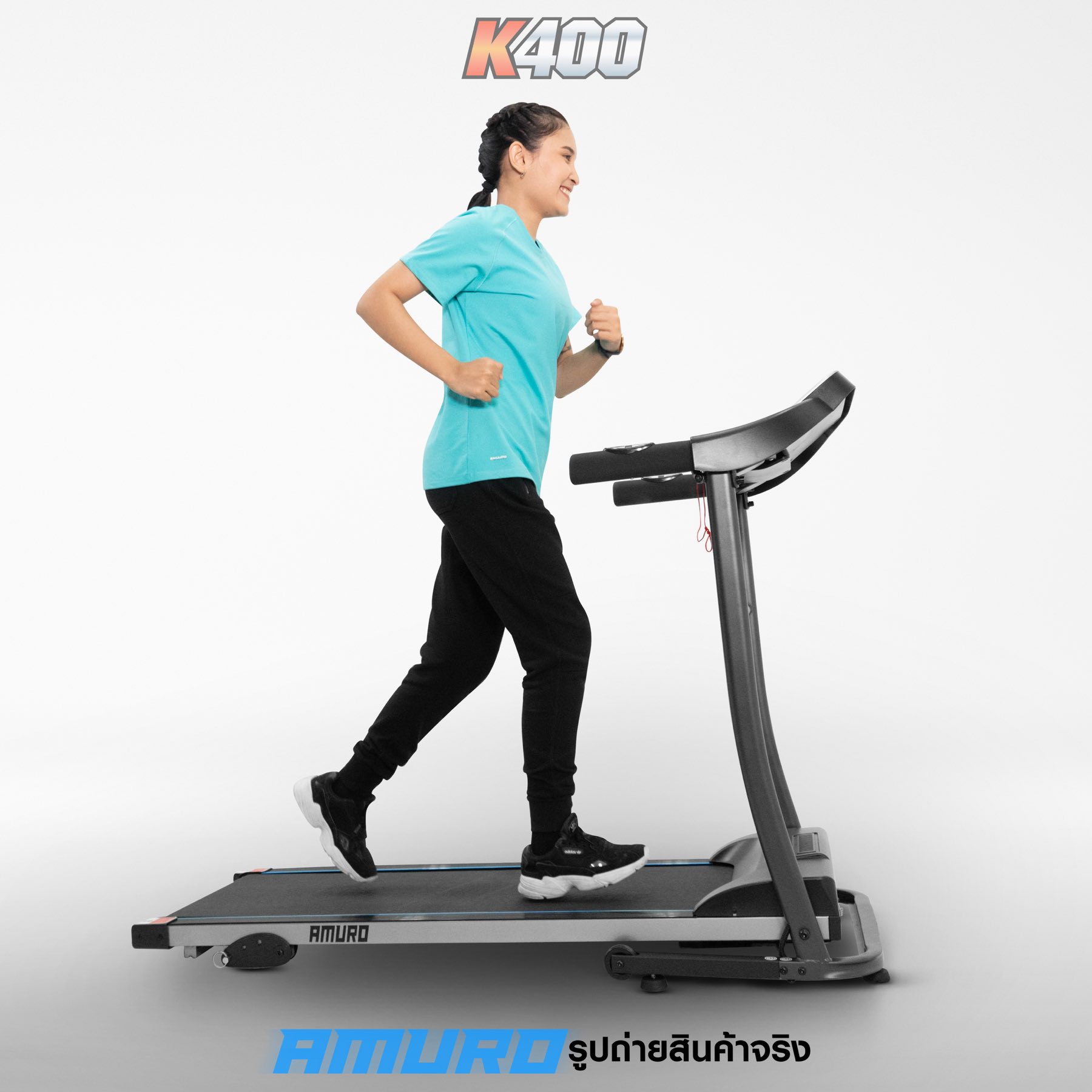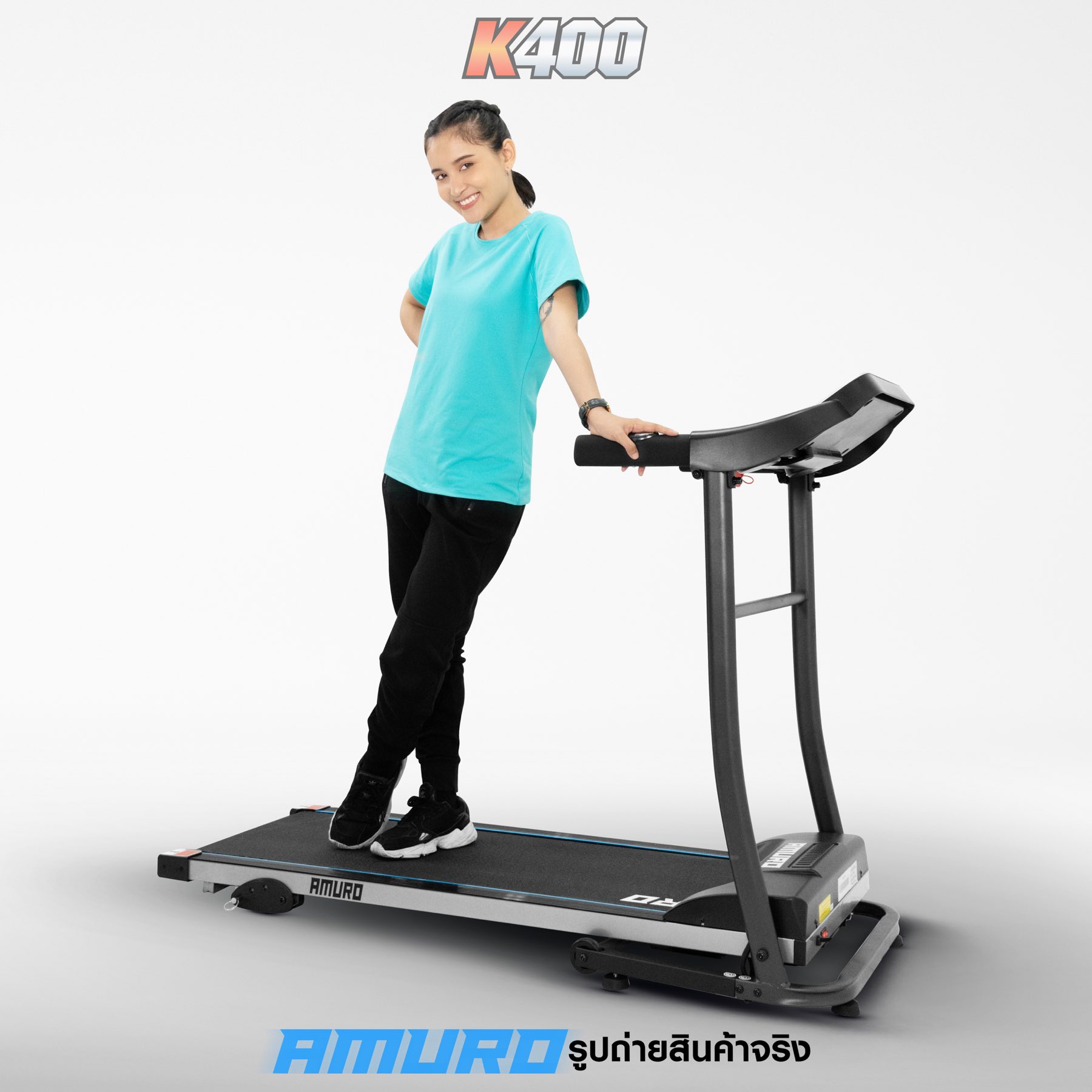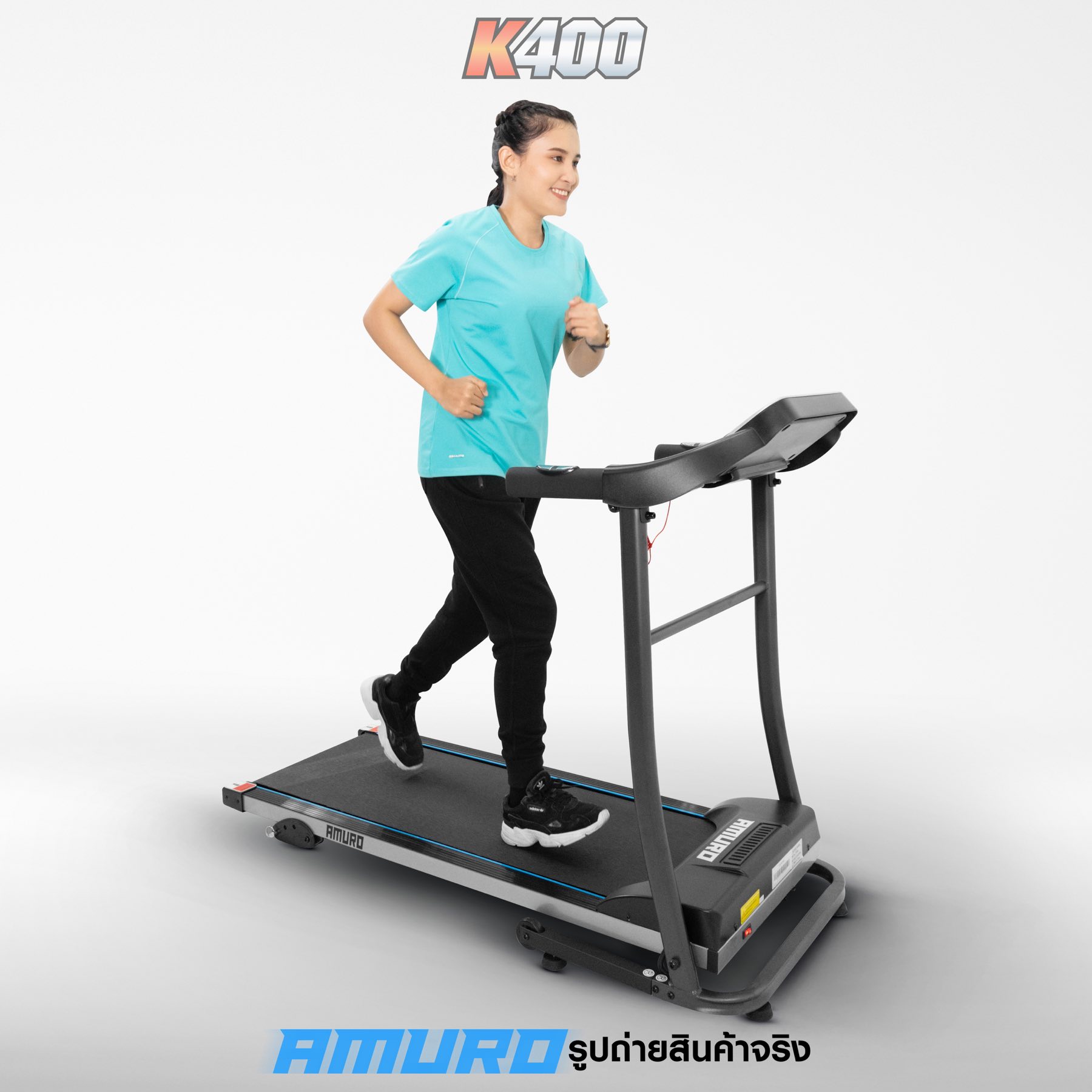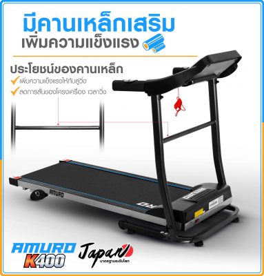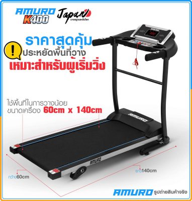ลู่วิ่งไฟฟ้า AMURO K400 ที่สุดแห่งความคุ้มค่า คุ้มราคา กับพื้นที่วิ่งกว้างเต็ม 40cm วิ่งสบาย อิสระ และสามารถปรับความเร็วได้สูงสุด 12 กิโลเมตร ต่อ ชั่วโมง (ค่าส่งสินค้าทั่วประเทศ 600 บาท ต่อชิ้น) *พื้นที่เกาะมีค่าบริการเพิ่มเติม กรุณาติดต่อเจ้าหน้าที่