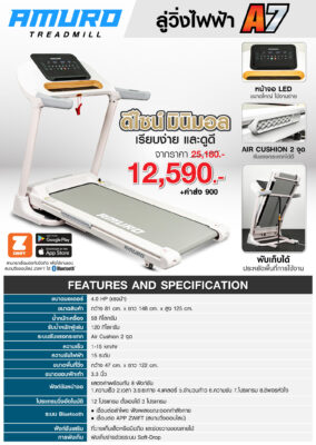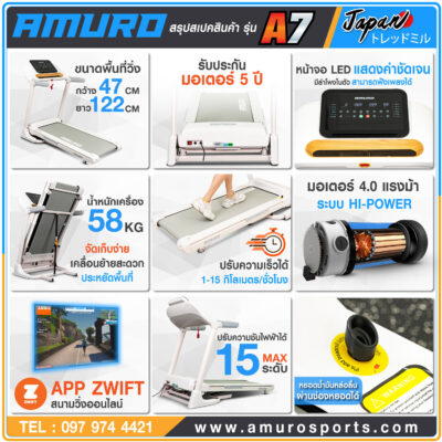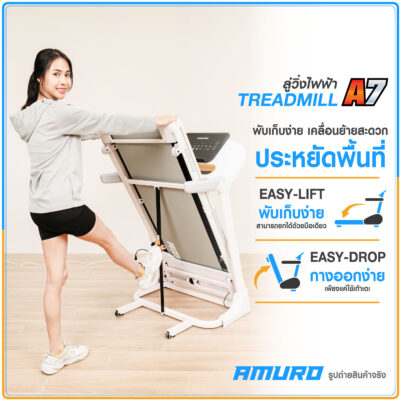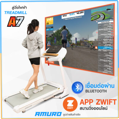 ลู่วิ่งไฟฟ้า AMURO รุ่น A7 สไตล์ MUJI รับน้ำหนักได้120 กก. มีระบบ Air Cushion 2 จุด พับเก็บง่าย รองรับ Bluetooth และ Zwift ครบทุกฟังก์ชันจบในเครื่องเดียว (ค่าส่งสินค้าทั่วประเทศ 900 บาท ต่อชิ้น) *พื้นที่เกาะมีค่าบริการเพิ่มเติม กรุณาติดต่อเจ้าหน้าที่
