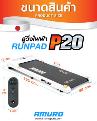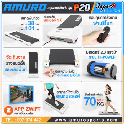 สรุปจุดเด่นของสินค้า: ลู่วิ่งไฟฟ้า AMURO รุ่น P20 หากคุณต้องการข้อมูลเพิ่มเติมเกี่ยวกับรุ่นสินค้านี้