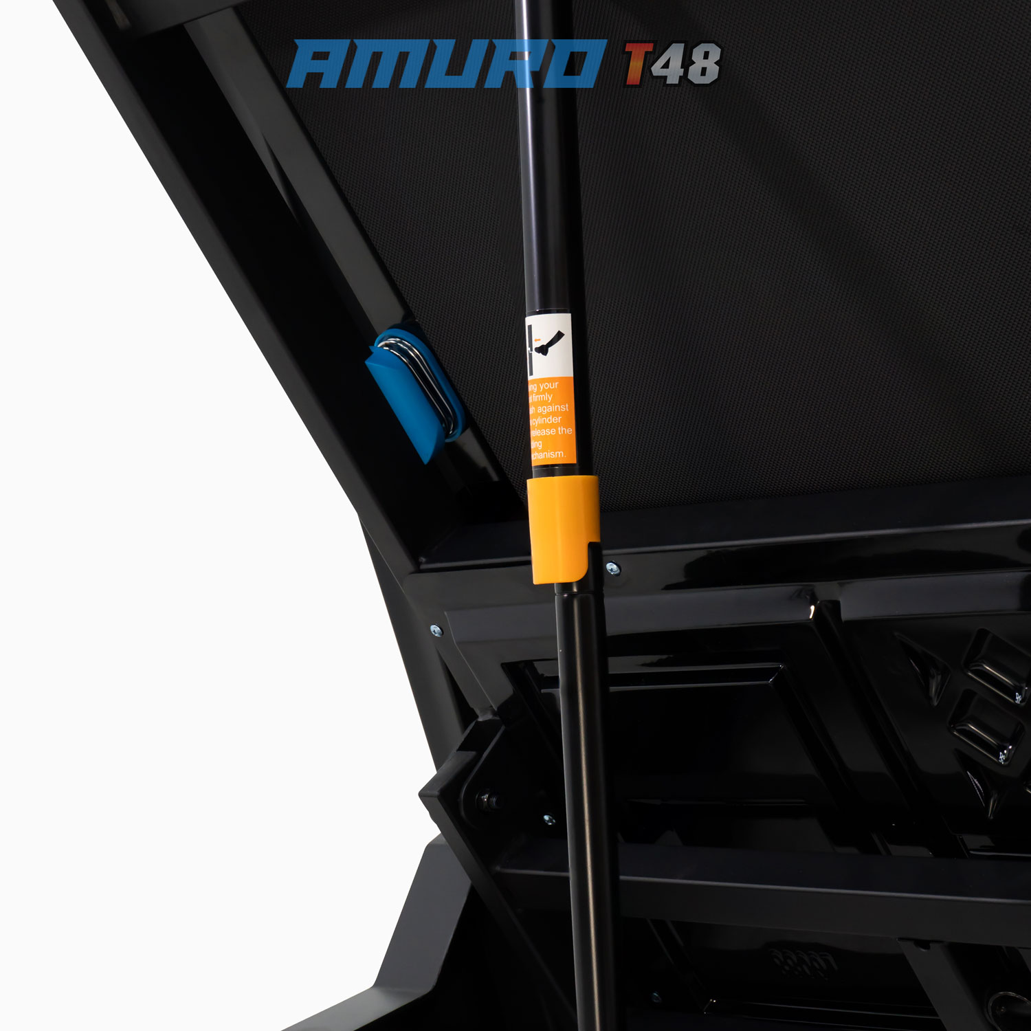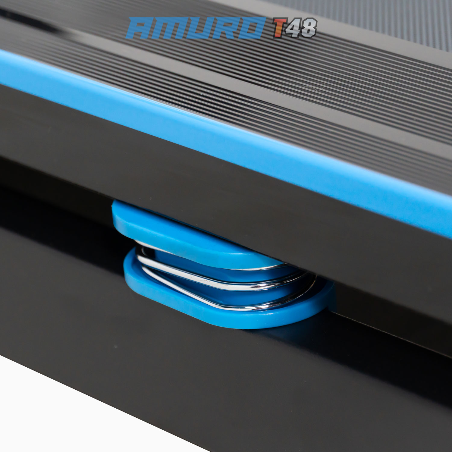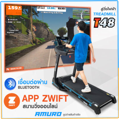 ลู่วิ่งไฟฟ้า AMURO รุ่น T48 วิ่งสนุกมีความยืดหยุ่นสูง ระบบสปริง ซับแรงกระแทก 8 จุด ปุ่มสั่งการอัจฉริยะ ดีไซน์สวย ทันสมัย ใช้งานง่าย พื้นที่วิ่งขนาดใหญ่ กว้าง 48×135 cm. สามารถเชื่อมต่อ APP ZWIFT ได้ผ่าน Bluetooth (ค่าส่งสินค้าทั่วประเทศ 900 บาท ต่อชิ้น) *พื้นที่เกาะมีค่าบริการเพิ่มเติม กรุณาติดต่อเจ้าหน้าที่